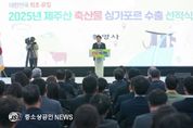 제주산 한우와 돼지고기가 1일 싱가포르 첫 수출길에 올랐다. 11월 2일 한국-싱가포르 정상회담에서 수출을 공식 합의한 지 한 달 만이다. 제주특별자치도는 농림축산식품부, 식품의약품안전처와 공동으로 이날 오후 2시 제주항에서 제주산 한우‧돼지고기의 첫 싱가포르 수출을 기념하는 선적식을 개최했다. 선적식에는 오영훈 제주도지사, 박정훈 농식품부 식량정책실장, 송성옥 광주식약청장을 비롯해 수출업체, 생산자단체 등 150여 명이 참석한 가운데 추진 성과를 공유하고 유공자에게 표창장을 수여했다. 특히, 수출 차량 앞에서 진행된 제막 행사에서는 세계시장으로 판로를 개척하겠다는 비전도 발표했다. 싱가포르 수출작업장은 제주축협(도축장), 서귀포시축협(가공장), 제주양돈농협(도축장,가공장), 대한에프엔비(가공장), 몬트락(가공장) 6곳이며, 초도 수출물량은 한우·돼지고기 4.5톤, 약 2억 8,000만 원 규모다. 이번 수출은 제주산 한우·돼지고기의 안전성을 축산물 수입 기준이 엄격한 싱가포르가 인정한 것으로, 지난 수년간 중앙부처, 지방정부, 제주 축산업계가 긴밀히 협력해 축산물 수출시장 다각화를 추진한 성과다