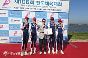 광주광역시체육회는 ‘제106회 전국체육대회’ 조정 여자18세이하부 쿼드러플스컬 경기에서 광주체고 조정팀이 3연패를 달성했다고 밝혔다. 20일 서낙동 조정경기장에서 열린 조정 18세이하부 쿼드러플스컬 경기에 참가한 광주체고 조정팀(김지선3, 노효림1, 배지영1, 천지민1)이 7분9초69를 기록하며 우승을 차지했다. 104회 전국체전부터 이 종목에서 우승을 차지한 광주체고는 3연패 대기록을 달성했다. 경량급 더블스컬 경기에 참가한 김지선, 배지영 선수는 7분23초80으로 금메달을 차지했고, 싱글스컬 경기에 참가한 노효림도 8분09초32로 가장 먼저 결승선을 통과하며 3명의 선수가 2관왕에 올랐다. 남자 18세이하부 강준우(3), 박준호(2)는 더블스컬에서 은메달을 획득했고 강한경(2), 박성빈(2)과 함께 쿼드러플스컬에서도 동메달을 차지했다. 특히 광주체고 조정팀의 상승세를 이어가고 있는 김지선(국가대표)은 지난 14일 창단식을 가진 목송그룹 여자조정팀에 입단 예정으로 우수한 체육인재가 우리 지역에서 성장하는 모범 사례로 주목받고 있다. 궁도 종목 일반부에 참가한 신용식, 윤일현, 최재훈, 고민구,