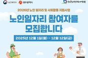 광주광역시는 노인공익활동사업, 노인역량활용사업 등 ‘2026년 노인일자리 사업’ 참여자를 12월 1일부터 12일까지 모집한다. 광주시는 2026년 노인일자리사업에 1574억원의 예산을 투입해 3만6440명의 어르신에게 일자리를 제공하며, 5개 자치구와 5개 시니어클럽 등 72개 일자리 수행기관에서 다양한 사업을 추진한다. 모집인원은 사업유형별로 ▲노노케어 등 노인공익활동사업 2만6479명 ▲보육시설보조 등 노인역량활용사업 6038명 ▲매장운영 등 공동체사업단 2754명 ▲민간업체 취업지원(취업알선형) 사업 1169명이다. 모집대상은 광주시 거주 어르신으로, 노인공익활동사업은 65세 이상(일부 60세 이상) 기초연금수급자 등 기준을 충족한 어르신이다. 노인역량활용사업은 65세 이상(일부 60세 이상), 공동체사업단·취업지원(취업알선형)은 60세 이상 어르신이 신청할 수 있다. 단, 국민기초생활보장법의 생계급여 수급자, 국민건강보험 직장가입자, 장기요양보험 등급판정자(1~5등급), 다른 부처 일자리 사업 참여자 등은 모집 대상에서 제외된다. 신청은 신분증·주민등록등본·관련 자격증 등 증빙서