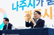 광주광역시는 11일 오후 나주시청 대회의실에서 ‘광주전남 통합 나주시 상생토크’를 개최하고, 통합의 필요성과 나주시 발전 방안에 대해 나주시민과 소통했다. 이날 상생토크에는 강기정 광주시장과 윤병태 나주시장 등 200여명이 참석해 통합 이후 나주시의 역할과 변화 등에 대해 의논했다. 강 시장은 먼저 ▲광주‧전남 통합 의지 ▲정부의 획기적인 특전(인센티브) ▲특별법안 특례 등을 설명하고, 통합의 긍정적 방향과 기대효과를 발표했다. 강 시장은 이어 시민과의 지속적인 소통 의지를 밝혀 현장 공감대를 형성했다. 통합 이후 광주와 나주 간 협력전략으로 ▲나주 혁신도시-원도심-광주를 잇는 광역교통망 강화 ▲에너지 신산업과 연계한 혁신도시 기능 고도화로 지역 성장 견인 ▲청년과 연구 인력이 정착할 수 있는 주거·문화·생활 여건 개선 등을 제시했다. 이어진 질의응답에서는 ▲첨단산업 육성을 위한 핵심 특례 특별법 반영 ▲의료인프라 질적 향상 ▲광주-나주 광역철도 신속 추진 등 광역 철도·도로 등 교통 기반시설(인프라) 구축 등 통합 이후 지역 주요 현안에 대한 다양한 질문이 오갔다. 강기정 광주시장은