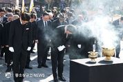 대전시의회 조원휘 의장은 8일 3·8민주의거 기념탑을 참배하고, 시청 대강당에서 열린 제66주년 3·8민주의거 기념식에 참석해 민주 정신의 세대 계승을 촉구했다. 이날 행사는 “담장을 넘어, 민주의 빛으로”라는 주제로 진행됐으며, 김민석 국무총리를 비롯해 권오을 국가보훈부장관과 이양희 3‧8민주의거 기념사업회장, 이장우 대전광역시장, 설동호 교육감, 3·8민주의거 기념사업회 관계자, 학생 등 650여 명이 참석했다. 행사에 앞서 주요 내빈들은 둔지미공원에 위치한 3·8민주의거 기념탑을 찾아 헌화와 묵념을 하며 민주주의를 위해 헌신한 선열들의 숭고한 정신을 기렸다. 이어 시청 대강당에서 열린 기념식에서는 기념공연 및 기념사, 3·8찬가 제창 등이 이어지며 당시 민주화 운동의 역사적 의미를 되새겼다. 조원휘 의장은 “3·8민주의거는 학생들이 중심이 되어 자유와 정의, 민주주의를 외쳤던 자랑스러운 역사로 대전의 민주정신은 오늘날 대한민국 민주주의 발전의 중요한 밑거름”이라고 강조하며, “ 대전시의회는 민주주의의 가치를 계승하고 미래 세대에게 올바르게 전하기 위해 책임 있는 의정활동을 이어가겠다”고 밝혔다.
