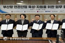 부산시는 27일 오후 2시 30분 부산항만공사 중회의실에서 부산지방해양수산청, 부산지방고용노동청, 부산항만공사, 부산항만산업총연합회와 '부산항 항만연관산업* 육성·지원을 위한 업무협약'을 체결했다고 밝혔다. 이날 협약식에는 성희엽 시 미래혁신부시장을 비롯해, 김혜정 부산지방해양수산청장, 김준휘 부산지방고용노동청장, 송상근 부산항만공사 사장, 김영득 부산항만산업총연합회 회장이 참석해 협약서에 직접 서명했다. 이번 업무협약은 부산항 경쟁력 강화와 지역경제 활성화의 기반이 되는 부산항 항만연관산업의 지속 가능한 성장을 도모하기 위해 마련됐다. 부산항만공사의 제안으로 시를 포함한 5개 기관이 뜻을 모으면서 협약 체결이 성사됐다. 항만연관산업은 부산을 중심으로 발달한 지역 특화산업으로, 전국 업체의 절반 이상이 부산에 등록돼 있다. 오늘 협약 체결에 따라, 협약기관은 앞으로 부산항 항만연관산업 육성·지원을 위해 협약서에 명시된 기관별 역할을 성실히 이행하고 상호 간 긴밀한 협력체계를 구축할 계획이다. ▲시는 부산항 항만연관산업 육성·지원을 ▲부산지방해양수산청은 부산항 항만연관산업 경