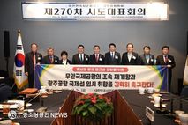 김명수 광주 광산구의회 의장(더불어민주당, 신흥동·우산동·월곡1·2동·운남동)이 14일 전주 라한호텔에서 열린 대한민국시군자치구의회의장협의회 제270차 시도대표회의에 참석해 ‘무안공항 조속 재개항 및 광주공항 국제선 임시 취항 촉구 건의안’을 제안했다. 이번 건의안은 지난해 12월 발생한 제주항공 여객기 사고 이후 무안국제공항 운영 중단으로 호남권 주민들과 지역 여행업계가 심각한 피해를 겪고 있는 상황에서 정부의 신속한 대책 마련을 촉구하는 내용을 담고 있다. 김 의장은 건의안을 통해 “무안공항은 호남의 유일한 국제공항으로, 지역 여행업계는 극심한 경영난에 처해 생존이 위태로운 실정이며, 주민들은 국제선 이용을 위해 인천·김해·대구 등 타 지역 공항으로 이동해야 하는 불편을 겪고 있다”고 호소했다. 이에 따라 “무안공항 활주로 연장 공사(3,160m)를 조속히 마무리해 안전성을 강화하고, 대형 항공기 운항이 가능한 인프라를 구축해야 한다”며 “이를 통해 무안공항의 신뢰도를 회복하고 호남권 관광 인프라를 재활성화해야 한다”고 강조했다. 또한 “무안공항 폐쇄 연장 조치에만 머물지 말고, 재개항 시기와 중장기 발전