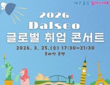 대구 달서구는 해외취업을 희망하는 청년들의 글로벌 역량을 강화하고 해외 진출 기회를 확대하기 위해 3월 25일‘2026년 Dalseo 글로벌 취업콘서트’를 온라인으로 개최한다. 이번 취업콘서트는 글로벌 기업 취업 트렌드와 준비 전략을 공유하고 해외취업에 필요한 실질적인 정보를 제공하기 위해 마련됐다. 글로벌 기업 현직자와의 직접적인 소통을 통해 청년들이 해외 취업 시장을 이해하고 세계 무대에서 경쟁력을 갖출 수 있도록 지원하는 것이 목적이다. 행사는 ▲ 글로벌 기업 취업 특강 ▲ 현직 멘토와 함께하는 토크콘서트 ▲ 모의면접 및 직무별 그룹 멘토링 등으로 구성된다. 글로벌 취업 특강에서는 아마존(Amazon) 현직자가 글로벌 기업 취업 전략과 준비 방법을 소개할 예정이다. 이어지는 토크콘서트에서는 나이키(NIKE), 존슨앤드존슨(J&J), LG디스플레이 등 글로벌 기업 현직자들이 참여해 해외취업 준비 과정과 실제 경험을 공유하고 청년들의 궁금증에 답한다. 특히 행사 후반에는 글로벌 기업 전·현직자 13명이 참여하는 모의면접과 소그룹 멘토링 프로그램이 진행된다. 참가자들은 실제