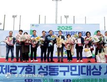 서울 성동구는 지난 10월 18일 성동을 빛낸 12명의 영광스러운 구민을 선정하여 제27회 성동구민대상 시상식을 개최했다. '성동구민대상'은 1993년부터 시작돼 올해 27회로 지역 발전에 공헌하고 모범이 되는 구민을 발굴하는 성동구 최고 권위의 상이다. 지금까지 141명의 수상자가 배출됐으며, 올해는 5개 부문 12명의 구민이 선정됐다. 최종 선정된 수상자는 ▲봉사상(이미순, 이철무, 임옥희, 조철현, 지준환, 허화자) ▲효행 및 선행상(서태호, 이민규) ▲모범가정상(김태경) ▲환경보호상(정재화, 지기남) ▲체육진흥상(김광열) 이다. 봉사상 이미순 씨는 취약계층의 일대일 돌봄 등 지역 위상 제고 및 나눔 실천의 공로로, 이철무 씨는 15년 이상 지역사회 봉사와 공동체 활성화 활동으로, 임옥희 씨는 20여 년간 1만여 시간 봉사로 취약계층 복지 기여로, 조철현 씨는 지역사랑 나눔의 실천 리더로서 봉사 정신을 널리 전파한 공로로, 지준환 씨는 저소득 어르신 무료 한방진료 및 지역사회 통합 돌봄 기반 마련으로, 허화자 씨는 매월 이미용 봉사와 취약계층 지원 등 공로를 인정받아 수상했다. 효행 및 선행상