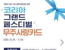 무주군은 오는 29일부터 11월 9일까지 진행되는 ‘코리아 그랜드 페스티벌 기간 동안 무주사랑상품권을 최대 20% 할인된 혜택으로 이용할 수 있다고 밝혔다. ’코리아 그랜드 페스티벌‘은 산업통상부와 중소벤처기업부 등 정부 부처가 공동 주관하는 국가 단위 대규모 할인행사로, 행사 기간 중 페스티벌 기간에 무주사랑상품권을 구매하면 15% 선할인에 더해, 추가 5% 캐시백이 추가로 적립된다. 캐시백은 무주사랑카드로 결제하면 고향사랑페이 앱(APP)을 통해 즉시 자동 적립되며, 지류 상품권과 정책 수당 결제는 제외된다. 황인홍 무주군수는 “무주군은 9월부터 무주사랑상품권의 한도를 30만 원 증액해 100만 원까지 구매할 수 있도록 했으며, 할인율도 15%로 상향한 상태”라며 “이번 5% 캐시백까지 더해지면 20% 할인 혜택을 누릴 수 있는 만큼, 무주사랑상품권으로 장도 보고, 외식도 하고, 여가 생활도 누려 보시면 좋겠다”라고 밝혔다. 이어 “이번 행사가 주민들의 가계 부담을 덜고, 무주를 찾는 관광객들에게는 유용한 혜택을 제공하며, 지역 상권에는 활력을 불어넣는 계기가 되길 바란다”라고 덧붙