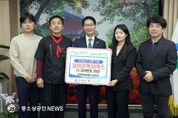 고창군을 향한 나눔의 행렬이 멈추지 않고, 어려운 경제상황 속에서도 사랑이 계속 이어지고 있다. 고창군에 따르면 지난 27일 총 1200만원 상당의 이웃돕기성금품을 전달받았다고 밝혔다. 이번 기탁식에서 달인장어(대표 오은성)에서는 장어진액 50박스(1000만원 상당)를 기탁했고, 진원건설(이사 김영대)에서 200만원의 성금을 기탁했다. 이는 전북공동모금회를 통해 관내 저소득 취약계층에 전달될 예정이다. 달인장어 오은성 대표는 이웃돕기에 동참하면서 “직접 만들어 정성이 듬뿍 들어간 장어즙이 어려운 분들의 건강에 활력소가 되길 바란다”며 뜻을 전달했다. 진원건설의 이사이자 작가활동을 하고 있는 김영대 작가는 이웃돕기에 동참하면서 “작 품 전시회를 열고 수익금을 기부하게됐다.”며 “앞으로도 소외계층을 위해 노력하겠다”고 뜻을 전달했다. 심덕섭 고창군수는 “이웃을 향한 따뜻한 나눔이 고창 전역에 퍼져, 모두가 체감할 수 있는 복지로 이어질 수 있도록 최선을 다하겠다”고 말하며 감사를 표했다.