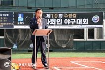 수원특례시의회는 10월 19일 황구지천야구장에서 열린 ‘제10회 수원컵 전국 사회인 야구대회 개회식’에 참석해 선수들을 격려했다. 이번 대회는 경기일보가 주최하고 수원시야구소프트볼협회가 주관했으며, 전국 사회인 44개 팀이 참가해 뜨거운 열정 속에 경기를 펼쳤다. 이날 행사에는 이재식 의장, 김정렬 부의장을 비롯한 오세철 예산결산특별위원장, 김동은 의원이 함께해 선수단을 응원하며, 전국 각지에서 모인 야구 동호인들과 교류의 시간을 가졌다. 이재식 의장은 축사에서 “직장과 가정을 오가며 바쁜 일상 속에서도 야구에 대한 열정으로 최선을 다하는 선수 여러분께 진심 어린 박수를 보낸다”며 “이번 대회가 지역과 세대를 넘어 우정을 나누는 축제가 되길 바란다.”고 말했다.