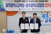 광주시교육청은 31일 본청 상황실에서 광주광역시경찰청과 이정선 교육감과 김영근 광주경찰청장 등이 참석한 가운데 ‘학교폭력 예방 및 청소년 선도·보호’를 위한 업무협약을 체결했다. 이번 협약은 시교육청-광주경찰청의 협력체제 구축 및 공동대응을 위해 마련됐다. 이번 협약에 따라 두 기관은 ▲학교폭력 및 청소년 범죄 예방 및 대응에 관한 사항 ▲청소년 선도 및 보호 활동에 관한 사항 ▲양 기관 사업에 대한 상호 홍보 및 정보 공유에 관한 사항 ▲기타 양 기관의 교류 및 협력에 관한 사항 등을 협력한다. 또 연말까지 ▲소년범 상담특화 프로그램 ▲학교폭력∙청소년 범죄 예방(청소년 도박, 사이버 폭력 포함) 퀴즈 대회 ▲청소년 절도 예방 캠페인 및 합동 순찰 ▲찾아가는 학교폭력 예방교육 등을 실시할 예정이다. 이정선 교육감은 “학교폭력 예방 및 청소년 선도∙보호는 교육기관과 지역기관의 유기적 협력이 매우 중요하다”며 ”모든 광주 학생이 학교폭력과 청소년 범죄로부터 안전하고 행복할 수 있도록 광주경찰청과 함께 적극 나서겠다”고 말했다.