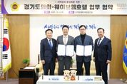 경기도의회는 4일 오후 의장 접견실에서 시흥 소재 웨이브엠 호텔(대표 천수봉)과 ‘도의원 및 직원 복지 증진과 지역 내 관광·숙박업 활성화를 위한 업무협약’을 체결했다. 이번 협약은 도의회 구성원의 복지 수준을 높이는 동시에, 지역 내 숙박·관광 산업의 경쟁력 강화와 상생 협력 기반을 마련하기 위해 추진됐다. 업무협약식에는 김진경 의장(더민주·시흥3)과 김종배 의원, 임채호 의회사무처장 및 웨이브엠 호텔 대표 등이 참석했다. 이날 양 기관은 ▲객실 및 부대업장 이용 시 할인 제공(객실 20% 할인 등) ▲조식 할인 및 객실 이용 시 1인 조식 무료 제공 ▲행사 개최 등 다양한 분야에서의 상호 협력 추진 등에 대한 업무협약을 체결했다. 김진경 의장은 “이번 협약을 통해 도의원과 직원들은 좋은 시설을 편리하게 이용할 수 있게 되고, 동시에 지역 관광 및 숙박 산업에도 의미 있는 보탬이 될 것”이라며 “경기도의회와 지역 기업이 서로 신뢰를 쌓고 협력의 폭을 넓힌다는 점에서 협약의 의미가 크다”라고 기대했다. 이어 “오늘의 협약이 단순한 혜택 제공을 넘어 지역 경제 활성화로 이어지기를 바란다”