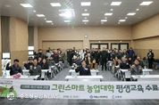 고흥군은 지난 11일 고흥 스마트팜혁신밸리 2층 대강당에서 국립순천대학교와 함께 ‘그린스마트 농업대학 평생교육 과정 수료식’을 개최했다고 밝혔다. ‘그린스마트 농업대학 평생교육과정’은 국립순천대학교가 글로컬대학30 사업과 연계해 운영하는 프로그램으로, 고흥군과 협력해 지역 농업인을 위한 실용 중심 교육을 추진하고 있다. 이번 과정은 2025년 8월부터 2026년 2월까지 약 6개월간 운영됐다. 교육과정은 스마트원예반 44명, 스마트한우반 59명을 대상으로 이론 교육과 현장 중심 실습을 병행해 최신 농업기술과 경영·유통 지식을 실제 농업 현장에 적용할 수 있도록 구성됐다. 수료식에는 공영민 군수와 국립순천대학교 그린스마트팜 고흥캠퍼스 단장, 교육 관계자와 교육 수료생 등 70여 명이 참석해 교육과정의 경험과 성과를 공유했다. 교육에 참여한 한 수강생은 “이론뿐 아니라 현장에서 바로 활용할 수 있는 실습 중심 교육이 큰 도움이 됐다”며 “교육을 통해 배운 내용을 영농 현장에 적용해 생산성과 경영 효율을 높여 나가고 싶다”고 소감을 전했다. 공영민 군수는 “그린스마트 농업대학 평생교육과정은