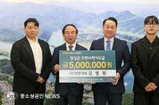임실군은 지난 5일, 지역기업 (주)한덴 김병원 대표가 지역사회 발전과 주민 복리 증진을 위해 고향사랑기부금 500만 원을 기탁했다고 밝혔다. 김 대표는 2023년에 이어 두 번째 기부로, 고향에 대한 애정과 지역 상생 의지를 실천하고 있다. (주)한덴은 임실읍에 위치한 낙농품 및 동·식물성 유지 도매 전문 기업으로, 치즈 제조 원료 공급을 통해 지역 낙농산업 및 지역경제에 기여하고 있다. 특히 올해 임실N치즈축제에서 얻은 판매 수익금 일부를 기부하며, 지역 축제의 의미를 지역 환원으로 연결하는 선순환 사례를 보여줬다. 김병원 대표는 “임실이 더욱 발전하기를 바라는 마음에서 수익의 일부를 기부하게 됐다”며“앞으로도 축제 판매 수익 등 기업 활동을 통해 얻은 이익을 지역에 지속적으로 환원하겠다”고 밝혔다. 심 민 임실군수는 “고향 사랑을 꾸준히 실천해 주셔서 깊이 감사드린다”며“기부자의 뜻을 반영해 지역 주민 복지와 지역 발전을 위해 소중히 활용하겠다”고 말했다.