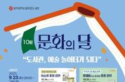 광주광역시립도서관(무등·사직·산수)은 ‘10월 문화의 달’을 맞아 가족들이 도서관에서 함께 즐길 수 있는 강연, 전시, 체험 프로그램 등 ‘도서관, 예술 놀이터가 되다’ 행사를 운영한다. 무등도서관은 10월 한달 간 가을·책 주제 ‘민화 단체전’과 자료실 테마도서 전시를 연다. 오는 24일 아트컬렉터 이소영(미술 에세이스트)의 ‘현대미술 클로즈업!’, 31일 예술감독 정재윤(aka 쥴리정)의 ‘문학 속 음악의 장면들’, 19일과 29일에는 ‘제로웨이스트 특강’으로 친환경 비누 만들기와 캘리그라피 텀블러 만들기 체험 행사를 운영한다. 사직도서관은 10월 한달 동안 전통문화 ‘조선 화원의 하루’ 원화 전시, 자료실 테마도서 전시를 진행한다. 이와 함께 22일 이승연 작가의 ‘케이(K) 콘텐츠의 중심 한국 영화를 말하다’, 25일 ‘나만의 보자기 가방 만들기’ 전통문화 체험프로그램을 준비했다. 산수도서관은 13일부터 24일까지 ‘엄마는 좋다’ 그림책 원화 전시와 연체자 해방의 날 행사를 운영하고, 16일에는 빛과 무늬로 완성하는 자개거울 체험을, 23일에는 실용과 멋을 담은 냄비받침 체험을 할 수 있다.