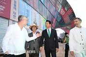오세훈 서울시장은 26일 오후 6시 30분 열린송현 녹지광장(종로구 송현동)에서 진행된 '제5회 서울도시건축비엔날레' 개막식에 참석해 54일간 서울 도심을 장식할 글로벌 건축 축제의 시작을 알렸다. '서울비엔날레는’ 세계 도시가 함께 도시문제 해법을 고민하고 사람을 위한 건축문화를 교류하는 국내 최초 도시건축 분야 국제행사로 11월 18일까지 열린송현 녹지광장과 서울도시건축전시관 등에서 ‘매력 도시, 사람을 위한 건축’을 주제로 개최되며 이번 전시는 영국 출신 세계적 디자이너 토마스 헤더윅이 총감독을 맡았다. 이날 개막식에는 오세훈 서울시장과 토마스 헤더윅 총감독을 비롯해 마옌송, 스테판 웹스터 등 국내외 유명 건축가와 주한 외교사절, 시민 등 500여 명이 참석했다. 개막식에 앞서 오 시장은 토마스 헤더윅 총감독과 함께 서울도시건축전시관과 광화문광장을 차례로 방문해 전시 작품들을 둘러봤다. 이어 열린송현 녹지광장으로 이동해 철골과 스틸패널로 만든 대형조형물 ‘휴머나이즈 월(Humanise Wall)’과 ‘일상의 벽(Walls of Public Life)’을 차례로 관람했다. ‘휴머나이즈 월’은 총