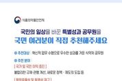 식품의약품안전처는 국민이 체감하는 탁월한 성과를 창출한 공무원을 국민이 직접 추천해 포상하는 ‘국민추천제’를 1월 20일부터 운영한다고 밝혔다. ‘국민추천제’는 ‘인사는 공정하게, 신상필벌은 확실하게’라는 국민주권정부의 국정철학을 바탕으로 공직사회의 성과 보상 체계를 혁신하고자 올해부터 범정부적으로 도입한 '공무원 특별성과 포상금 제도'의 일환이다. 소관 업무 분야에서 통상적인 직무수준을 뛰어넘는 특별한 성과를 달성한 공무원에게는 기관장 표창과 함께 1인당 최대 3천만원 이내의 파격적인 수준의 포상금을 지급하는 한편, 기관 누리집과 SNS 등을 통해 특별성과 사례를 국민에게 알리고 성과 중심의 공직문화를 조성한다. 1월 20일부터 국민 누구나 식약처 소속 공무원 중 우수한 성과를 창출한 공무원을 365일 언제든지 추천할 수 있다. 오유경 식약처장은 “공무원이 국가와 국민의 이익을 증진하고 공공의 안전과 질서 유지에 앞장선 성과를 체감하는 사람은 국민”이라며, “특별성과 포상금 제도에 국민추천 방식을 도입함으로써 국민이 체감하는 성과가 정당하게 평가받고 보상받는 성과 중심의 공직문화를 정착시켜 나가겠