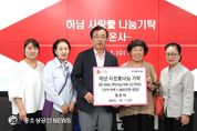 지난 1일 청운사는 하남 사랑愛나눔 성품 및 성금으로 라면 100박스, 백미 10kg 100포, 성금 500만원(1,060만원 상당)을 기탁하고 기탁식을 가졌다. 청운사는 2020년부터 관내 취약계층을 위한 성품 및 성금 기탁을 통해 꾸준한 나눔 문화를 실천하고 있으며, 올해도 하남시에 성품 및 성금을 기탁하며 나눔을 실천했다. 이날 기탁식에는 이현재 하남시장을 비롯하여 청운사 노혜원 사무장, 조순례 신도회장, 김영숙 부회장, 전인숙 총무가 참석하여 자리를 빛냈다. 노혜원 사무장은“지역내 어려운 이웃들에게 조금이나마 도움이 되길 바라고, 풍성한 한가위 명절이 되길 바란다”고 전했다. 이현재 하남시장은“2020년부터 끝임없이 나눔을 실천해 준 청운사에 감사드리며, 어려운 이웃이 따뜻한 추석이 되실 수 있도록 잘 전달하겠다”고 말했다. 이날 기탁한 성금 및 성품은 동 행정복지센터 및 하남시푸드뱅크를 통해 취약계층에게 배부될 예정이다.