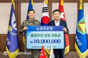 광주은행은 26일, 77주년 국군의 날을 앞두고 지역방위 책임사단인 제31보병사단(사단장 이일용)을 방문해 위문금 1천만원을 전달하고 장병들을 격려했다고 밝혔다. 이날 전달식에는 고병일 광주은행장, 이일용 제31보병사단 사단장 및 관계자가 참석한 가운데, 지역 안보의 최일선에서 헌신하는 장병들의 노고에 감사를 전하는 뜻깊은 시간을 가졌으며, 전달된 위문금은 장병들의 복지 증진과 사기 진작을 위해 사용될 예정이다. 고병일 광주은행장은 “지역민들이 안심하고 일상을 누릴 수 있는 것은 국토방위를 위해 헌신하는 장병 여러분 덕분이다”라며, “광주은행은 지역 대표은행으로서 ESG경영을 기반으로 다양한 사회공헌 활동을 지속적으로 확대해 나가겠다”고 말했다. 한편, 광주은행은 매년 제31보병사단을 방문해 위문활동을 이어오고 있으며, 군 장병 적금 및 전용 제휴카드 출시 등 맞춤형 금융서비스 제공에도 앞장서고 있다.