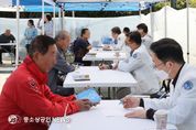 고흥군은 31일 풍양면사무소 임시청사에서 호남권역재활병원(병원장 문경래)과 협력해 의료취약 지역주민을 대상으로 심뇌혈관질환 예방사업을 실시했다고 밝혔다. 이번 의료봉사는 어르신, 독거노인, 장애인, 다문화가족 등 의료 접근이 어려운 주민 300여 명을 대상으로 진행됐다. 이날 호남권역재활병원에서는 문경래 병원장을 비롯한 의료진이 참여해 내과, 정형외과, 재활의학과, 비뇨기과 등 전문 진료를 실시하고, 근골격계 통증 및 재활 관련 진료를 비롯해 맞춤형 치료 상담 등 실질적인 의료 서비스를 제공해 큰 호응을 얻었다. 또한, 현장에서 군 보건소 방문보건팀은 ▲혈압·혈당·콜레스테롤 측정 ▲만성질환 및 건강상담 ▲심뇌혈관질환 예방 교육 ▲건강 고위험군 등록·연계 등 기초 건강검진 서비스를 제공하며, 군민의 건강 점검과 예방 중심 관리를 지원했다. 공영민 군수는 현장을 방문해 의료진과 주민들을 격려하며 “의료 취약지역 주민들의 건강 증진을 위해 힘써주신 호남권역재활병원 의료진께 감사드린다”며 “앞으로도 찾아가는 방문건강관리와 만성질환 예방 프로그램 등을 통해 군민 모두가 건강하고 행복한 삶을 누릴 수 있도록