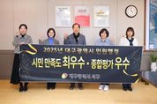 대구 서구청은 대구시에서 실시한 2025년 민원행정 시민 만족도 조사에서 최우수, 종합평가에서 우수 기관에 선정됐다고 밝혔다. 대구시는 민원행정서비스 품질 향상을 위해 매년 ‘민원행정 시민 만족도 조사’를 실시하고 있다. 시민 만족도 조사는 지난해 10월부터 올해 9월까지 민원 서비스를 이용한 시민을 대상으로 민원 서비스 과정, 서비스 결과, 민원 응대 태도 및 전반적인 만족도에 대해 전화 설문의 형태로 이루어졌으며, 서구는 9개 구·군 중에서 가장 높은 종합만족도 96.8점을 얻어 ‘최우수’기관으로 선정되는 쾌거를 이루었다. 또한 서구는 대구시에서 매년 실시하고 있는 민원행정 종합평가에서도 3년 연속‘우수’기관으로 선정되는 영예를 안았다. 대구시의 민원행정 종합평가는 9개 구·군의 민원제도 운영 분야 14개 지표와 민원처리 현황 분야 8개 지표 등 총 22개 지표에 걸쳐 이루어진다. 서구는 안전한 근무환경 조성, 스마트 민원서비스 운영 지원, 고충민원 처리·관리 및 해결 노력 등 전반적인 분야에서 높은 평가를 받았다. 특히, 2일 이상 법정민원 처리 기간 준수율과 민원처리