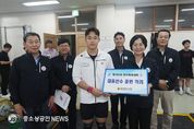 광주광역시의회 교육문화위원회가 제106회 전국체육대회를 대비해 강화훈련 중인 광주체육고등학교를 방문해 대표선수단을 격려했다. 이번 23일 선수단 격려에는 명진 위원장, 심창욱 부위원장, 김나윤, 정무창, 조석호, 홍기월 의원 등 6명의 시의원들이 나섰으며, 이들은 광주체고를 방문해 배구, 펜싱, 배드민턴, 육상, 양궁, 역도 등 강화훈련 중인 대표선수단을 격려했다. 제106회 전국체전에 광주선수단은 50개 종목 1,439명이 참가하는데, 이중 광주체고에서는 레슬링 등 242명(선수197, 임원45)이 광주를 대표해 참가한다. 지난 제105회 전국체전에서 총 50개의 메달(금13, 은15, 동20)과 7,142점을 획득해 역대 최고 득점을 따내며 ‘지역체육인재 양성 요람’ 역할을 톡톡히 한 바 있다. 제106회 전국체육대회는 내달 17일부터 23일까지 부산광역시 일원(82개 경기장)에서 개최되며 50개 종목 30,000여 명의 선수단이 시도 및 해외동포 선수단이 참가한다. 명진 위원장은 “광주시민을 대표하여 구슬땀을 흘려준 선수, 지도자분들께 감사하고 광주시민과 한마음으로 응원하겠다.”며