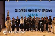 재외동포청은 11월 18일부터 20일까지 ‘제27회 재외동포 문학상 시상식 및 수상자 초청행사’를 성황리에 개최했다. 올해로 27번째를 맞이한 재외동포 문학상은 한글 문학 창작을 통해 재외동포의 정체성을 고취하고, 재외동포와 우리 국민들 간의 문화적 소통을 확대하기 위해 마련된 공모전이다. 금년에는 총 61개국 965명이 2,467편을 접수해, 응모자가 전년도 대비 91%가 증가하며 사상 최대의 참가율을 보였다. 이번 시상식에는 치열한 경쟁률을 뚫고 선정된 시·단편소설·수필 3개 부문, 총 12명의 수상자가 참석했다. 특히, 올해 처음으로 수상자 전원을 초청해 국내 문인들과의 교류 및 문화체험 프로그램을 진행했다. 김경협 재외동포청장은 18일 수상자들과 오찬을 함께하며 수상을 축하했다. 이 자리에서 김경협 청장은 “금년도에 처음으로 수상자 전원을 한자리에 모시고 행사를 개최하게 되어 더욱 의미가 깊다”며, “앞으로도 작품활동을 통해 한국 문학의 위상을 높이고 한국과의 유대를 계속 이어나가 주기를 바란다”고 말했다. 시상식은 19일 서울 종로 교원투어 콘서트홀에서 열렸으며,