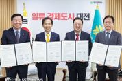 대전시는 7일 대전시청 10층 응접실에서 KAIST, 충남대학교, (사)바이오헬스케어협회(회장 맹필재)와 함께 의과학 융복합 인재양성 및 공동연구를 위한 업무협약을 체결했다. 이번 협약은 대전이 보유한 풍부한 바이오․의과학 연구 인프라와 우수한 교육․산학 연계 역량을 바탕으로 임상과 기초연구를 융합한 의사과학자(Physician Scientist) 및 의과학 분야 고급 연구인력 양성체계 구축을 위해 추진됐다. 협약에 따라 4개 기관은 ▲의사과학자 및 의과학 전문인력 공동 양성 ▲공동 연구 및 기술개발 협력 ▲교육·연구 인프라 및 정보 공유, ▲현장 실습 및 임상연계 교육 ▲지역 바이오기업 협력사업 등을 본격적으로 추진할 예정이다. 시는 본 협약을 통해, KAIST의 첨단 연구 역량, 충남대의 의학 및 임상 기반, 바이오헬스케어협회의 산업계 네트워크, 대전시의 행정 지원을 결합하여, 교육-연구-산업-정책이 유기적으로 연결되는 지역 혁신 모델 구현을 꾀하고 있다. 이장우 대전시장은 “대전은 과학기술과 의료, 산업이 조화를 이루는 대한민국 대표 바이오도시로, 이번 협약을 통해 연구와 임상이 결합된 고급