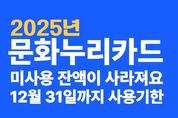 광주문화재단은 2025년 문화누리카드 사용기한이 12월 31일까지이며, 미사용 지원금은 자동 소멸한다고 밝혔다. 특히 연말까지 3만 원 이상 사용하지 않을 경우, 내년 자동 재충전 대상에서 제외될 수 있어 이용자의 주의가 필요하다. 올해 문화누리카드 지원금은 1인당 14만 원으로, 도서·영화·공연·테마파크·시외버스·KTX·체육시설·스포츠 용품·스포츠 관람·캠핑용품 등 다양한 분야에서 사용할 수 있다. 문화누리카드는 지역 축제에서도 활용할 수 있다. 올해 마지막 연계 축제인 ‘빛고을 사랑나눔 김장대전’에서는 김장체험과 김치 완제품 구매 시 문화누리카드 현장 결제가 가능하도록 운영되고 있다. 축제는 12월 14일까지 매일 오전 9시부터 오후 6시까지 진행된다. (문의 062-676-3601) 문화누리카드 이용자를 위한 전액소진 이벤트도 진행된다. 올해 지원금을 모두 사용한 뒤 12월 14일까지 인증하면, 총 107명에게 CU 모바일상품권(1만 원권)을 추첨 지급한다. 이벤트 인증은 광주문화누리 카카오톡 채널을 통해 참여할 수 있다. 한편, 문화누리카드 사용 가능 가맹점은 문화누리카드 누리집 또는 모바일 앱에서 지역