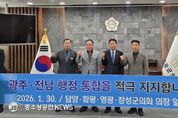담양군의회가 인구 소멸 위기 극복과 지역 경쟁력 강화를 위해 인근 의회와 손을 맞잡고 광주-전남 행정통합 추진에 힘을 보탰다. 담양·함평·영광·장성군 의장단은 ‘광주-전남 행정통합 염원 공동 퍼포먼스’를 펼치며, 행정구역의 경계를 넘어선 초광역 협력 체계 구축에 대한 강력한 의지를 표명했다. 이번 퍼포먼스는 단순한 선언을 넘어, 광주와 전남이 하나의 생활권이자 경제권으로 재편되어야만 수도권 집중화에 대응하고 자생적인 발전 동력을 얻을 수 있다는 절박한 공감대 속에서 마련됐다. 참석한 의장단은 성명을 통해 “행정통합은 지역의 미래 경쟁력 확보와 균형발전을 위해 더 이상 미룰 수 없는 시대적 소명”이라며, “지금이야말로 광주와 전남의 백년대계를 결정할 골든타임”이라고 강조했다. 특히 장명영 의장은 “담양은 광주와 인접한 지리적 이점과 생태문화 자원을 동시에 갖춘 지역으로, 행정통합 시 시너지 효과가 가장 클 것으로 기대되는 곳”이라며, “통합 과정에서 군민의 목소리가 소외되지 않고 실질적인 복지 증진과 지역 발전으로 이어질 수 있도록 정책적 역할을 다하겠다”고 말했다. 한편, 담양·함평·영