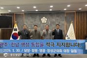 담양군·함평군·영광군·장성군 전남 4개 군의회 의장단은 30일 영광군의회에서 전남–광주 행정통합을 염원하는 공동 퍼포먼스에 참여했다. 이번 퍼포먼스는 행정구역의 경계를 넘어 전남과 광주가 하나의 생활권이자 경제권으로 나아가기 위한 의지와 공감대를 확인하기 위해 마련됐다. 특히 지역 간 협력과 상생 발전의 필요성에 대해 지방의회 차원에서 뜻을 모았다는 점에서 의미를 더했다. 의장단은 이날 “행정통합은 지역의 미래 경쟁력 확보와 균형발전을 위해 더 이상 미룰 수 없는 중요한 과제”라며, “지금이야말로 전남과 광주의 미래를 결정할 최고의 적기”라고 입을 모았다. 장성군의회 심민섭 의장은 “각 시군 의회가 뜻을 모은 오늘의 행동이 향후 이어질 논의와 협력의 출발점이 되기를 기대한다”며, “군민의 목소리가 충분히 반영될 수 있도록 의회 차원의 역할을 지속해 나가겠다”고 강조했다. 한편, 4개 시군 의회는 앞으로도 전남–광주 상생과 공동 발전을 위한 논의와 협력을 이어갈 계획이다.
