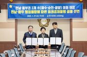 광양시의회 최대원 의장은 지난 27일 전라남도와 광주광역시의 행정통합 논의가 본격화되고 있는 가운데, 백인숙 여수시의회 의장, 강형구 순천시의회 의장과 함께 전남·광주 행정통합에 따른 전남 동부권의 공동 발전과 미래 경쟁력 강화를 위한 '전남 동부권 미래경제동맹 공동 선언문'을 발표했다. 이번 공동선언은 행정통합이 대한민국 균형발전의 새로운 전기가 되어야 한다는 공감대 속에서, 국가 산업·에너지·물류의 핵심 거점인 전남동부권(여수·순천·광양)이 통합 과정에서 소외되지 않고 초광역 경제권의 중심축으로 자리매김해야 한다는 3개 시의회의 공동 의지를 담아 마련됐다. 3개 시의회 의장은 수도권 일극체제 완화와 국가균형발전을 목표로 하는 전남·광주 행정통합의 기본 취지에는 적극 공감하면서도, 통합 이후 정책과 재정, 대규모 국책사업이 광주권 및 전남 서부권에 과도하게 집중될 가능성에 대해서는 깊은 우려를 표명했다. 이에 성공적인 행정통합의 전제 조건으로 ▲전남동부권의 산업적 위상과 국가산업 거점 기능이 충분히 반영된 정책 균형 확보 ▲물류·수출·에너지 거점에 부합하는 광역 교통·물류 인프라 확충 ▲농어촌 및 인구감소 지
