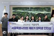 서울특별시의회 최호정 의장(국민의힘, 서초4)은 26일 의회 본관 의장접견실에서'제8기 겨울방학 대학생 인턴 간담회'를 개최하고, 청년들과 서울시 정책 현안, 일·가정 양립 고민 등을 주제로 진솔한 대화를 나눴다. 이번 간담회에는 대학생 인턴 7명이 참가했으며, 각자가 수행 중인 정책 연구 주제와 활동 소감을 공유했다. 참석한 대학생 인턴들은 본인의 전공과 관련된 정책 연구를 소개하며 활동 경험을 공유했다. 주요 연구 주제는 △서울시와 2개 자치구의 기후 위기 대응 △서울시 교육환경 변화 대응 △서울시 폐교 활용과 관련된 정책 방안 △서울시 축제 육성 및 활성화 방안에 대한 연구 △한강 이용정보 통합 앱 구축 및 활용방안 연구 △우리나라 정치·사회 갈등에 대한 대학생들의 인식 및 갈등 연구 등이다. 인턴들은 “정책이 논의되고 결정되는 과정을 가까이에서 직접 경험할 수 있는 매우 뜻깊은 시간이었다”고 소감을 밝혔다. “특히 정책결정의 무게와 공공부문의 책임을 현장에서 체감했다. 향후 진로와 사회적 역할에 대해 깊이 고민해보는 계기가 됐다”고 전했다. 최호정 의장은 “짧은 기간 동안이지만 의회의 실제 업무와 현안